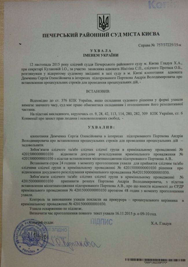 За даним фактом прокураторою Голосієвського району було порушено кримінальну справу проти Портнова. Втім, через деякий час справу було закрито, оскільки