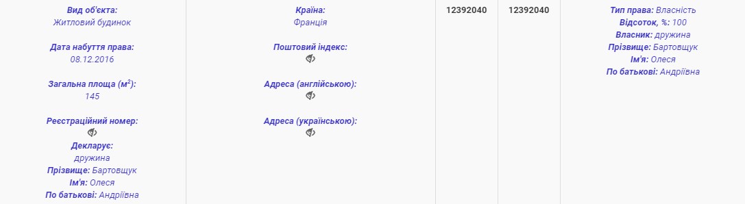 Зазначена в декларації зарплата Олесі Бартовщук в Європейському суді становить майже три мільйони гривень. Водночас сам Рябошапка, будучи працівником НАЗК, отримував трохи більше ніж 400 тисяч гривень.