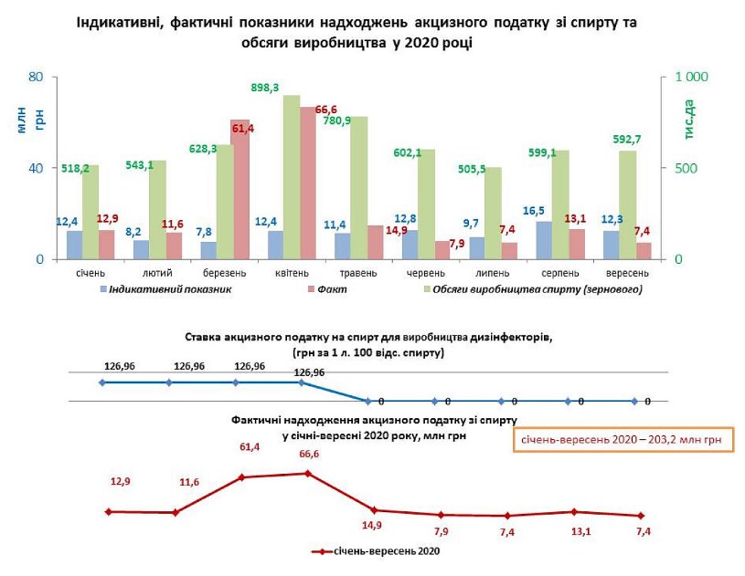 Ну, звісно ж, шалений попит на дезінфекційні засоби, що виник у лютому, знайшов, нарешті, своє відображення у виробництві – спирт для антисептиків починають виробляти надшвидкими темпами, а ставка акцизного податку на нього, на хвилиночку, складала 126 грн за 1(!) літр.