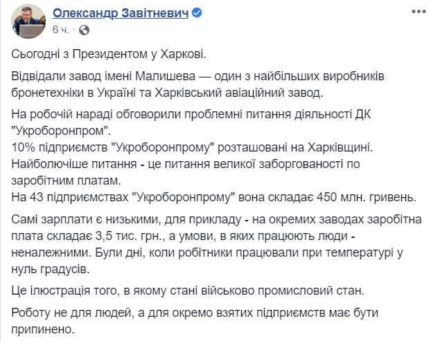 Сьогодні, 6 листопада, під час робочої поїздки президента України Володимира Зеленського до Харкова з'ясувалось, що підприємства "Укроборонпрому" знаходяться у надзвичайно кризовому стані.