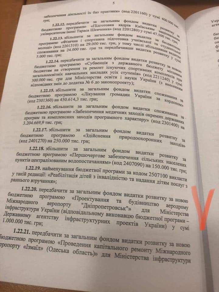 "Передбачити за загальним фондом видатки розвитку за новою бюджетною програмою "Проектування і будівництво аеродрому міжнародного аеропорту "Дніпропетровськ" для Міністерства інфраструктури України (відповідальному виконавцю бюджетної програми - Державному агентству інфраструктурних проектів України) у сумі 1.000.000 тис. грн", - йдеться в проекті бюджету, оприлюдненому Філатовим.