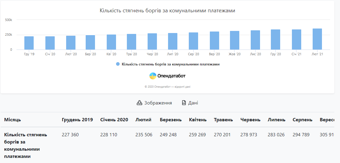 У минулому році було відкрито 342 232 проваджень щодо українців, які не сплатили комунальні послуги. Ця цифра у двічі більша за дані 2019 року, повідомляє Опендатабот. Більшість з топу комунальників, які стягують гроші, - установи, що постачають опалення.