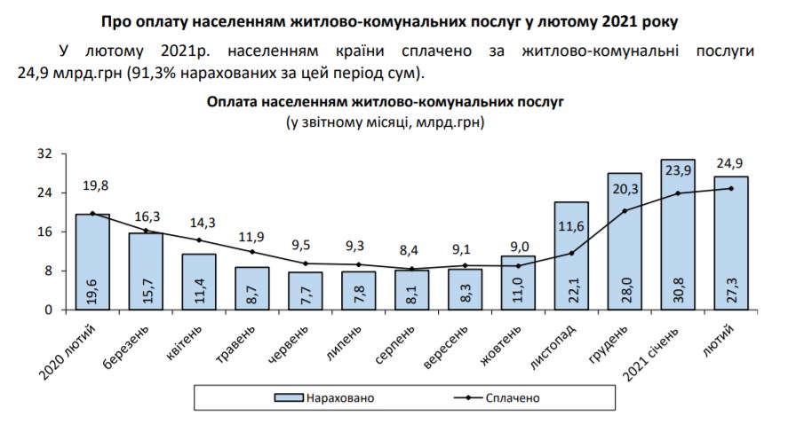 Найбільше українські громадяни заборгували за опалення і газ. З жовтня 2020 року обсяги заборгованості стали значно зростати. Зокрема, у листопаді українці сплатили лише половину нарахованих за цей період сум.