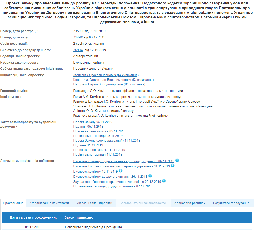 Останній етап проходження документа - повернуто з підписом від президента 9 грудня.
