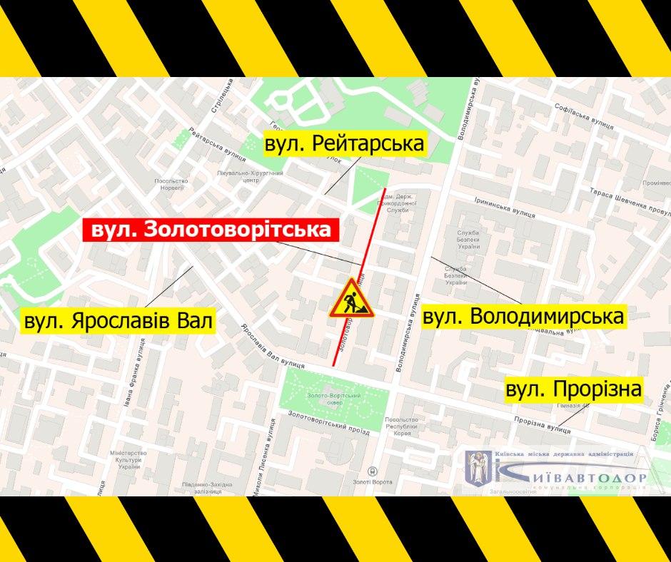 Із 2 квітня до 20 травня на вулиці Золотоворітській частково обмежать рух транспорту.