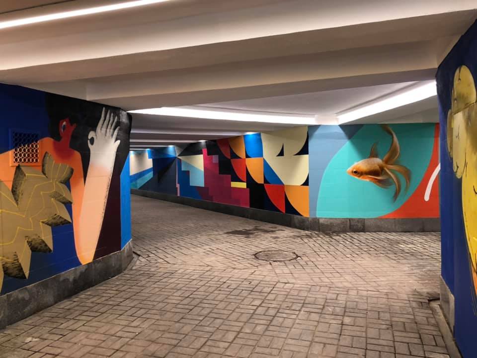 У Києві закінчився ремонт підземного переходу з проспекту Науки до Центрального автовокзалу і Деміївського ринку. На стінах "підземки" кияни та гості столиці можуть побачити сучасні мурали, створені відомими українськими художниками.