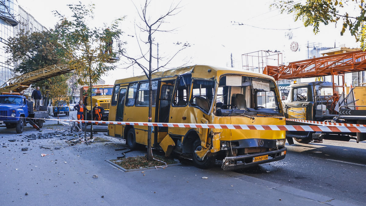 Від удару електроопора впала на проїжджу частину, а автобус зупинився на тротуарі.