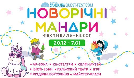 На відвідувачів фестивалю-квесту «Новорічні мандри» чекають візуальні інсталяції, віртуальні та настільні ігри, кіно 360 та 3D без окулярів, театральні вистави та перформанси, б’юті зони, танцювальні зони, майстерня подарунків та Резиденція Діда Мороза.