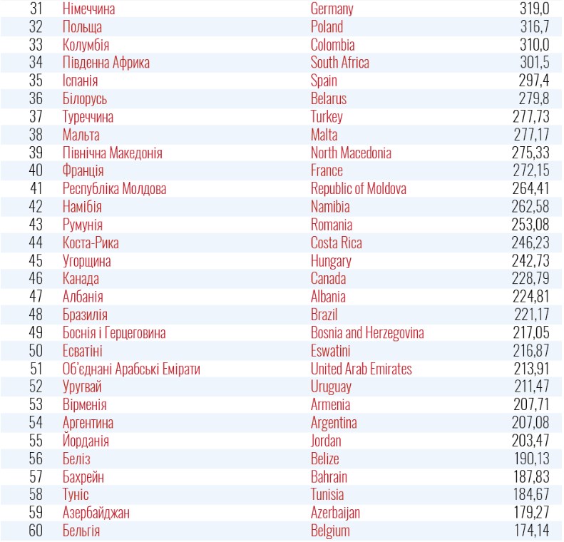 В Україні станом на 11 січня цей показник становить 106,8. У червоній зоні опинилися країни, де цей показник вищий. Загалом йдеться про майже усі держави Європи - Румунію, Францію, Туреччину, Білорусь, Іспанію, Польщу, Німеччину, Італію та інші.