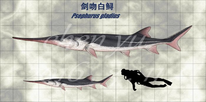 Повідомляється, що Psephurus gladius досягали в довжину 7 метрів, однак через масовий вилов їх популяція стала знижуватися. І вченим не траплялося жодного представника виду протягом декількох років.