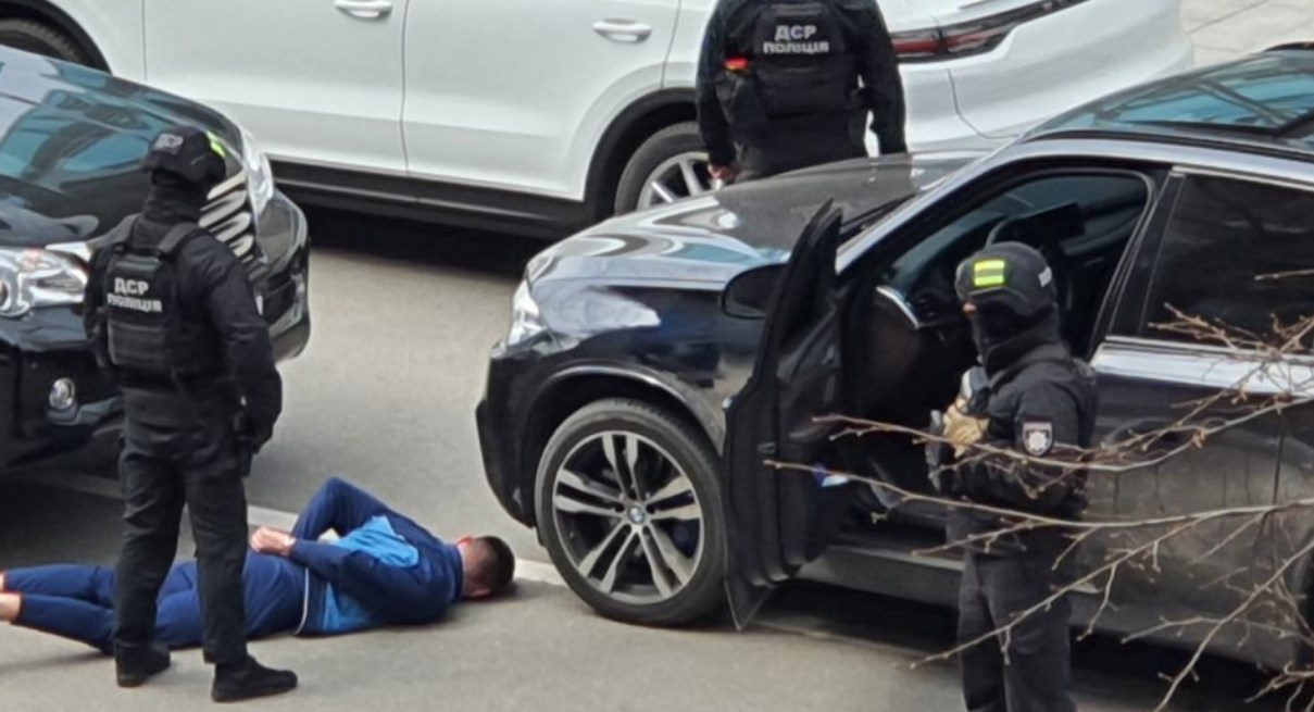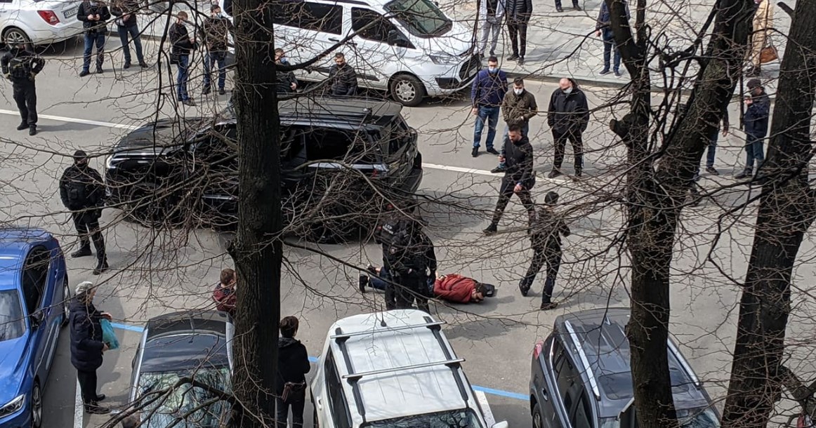 Силовики блокували автомобілі і затримали вже як мінімум трьох чоловіків. Двох із них поклали обличчям до асфальту. Наразі проводяться слідчі дії.