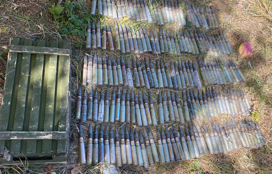 Вилучено 1 кілограм пластиду з вибуховим запалом, а також 13 протитанкових мін з підривниками та майже 4 тисячі набоїв різного калібру. Про це 23 вересня повідомила пресслужба відомства.