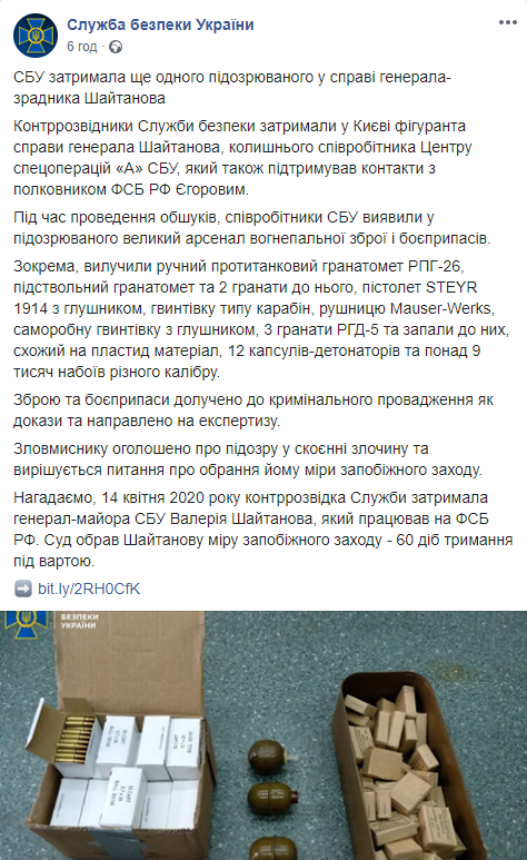 Гранатомети, гвинтівки та 9 тисяч набоїв знайшла СБУ у спільника генерала Шайтанова
