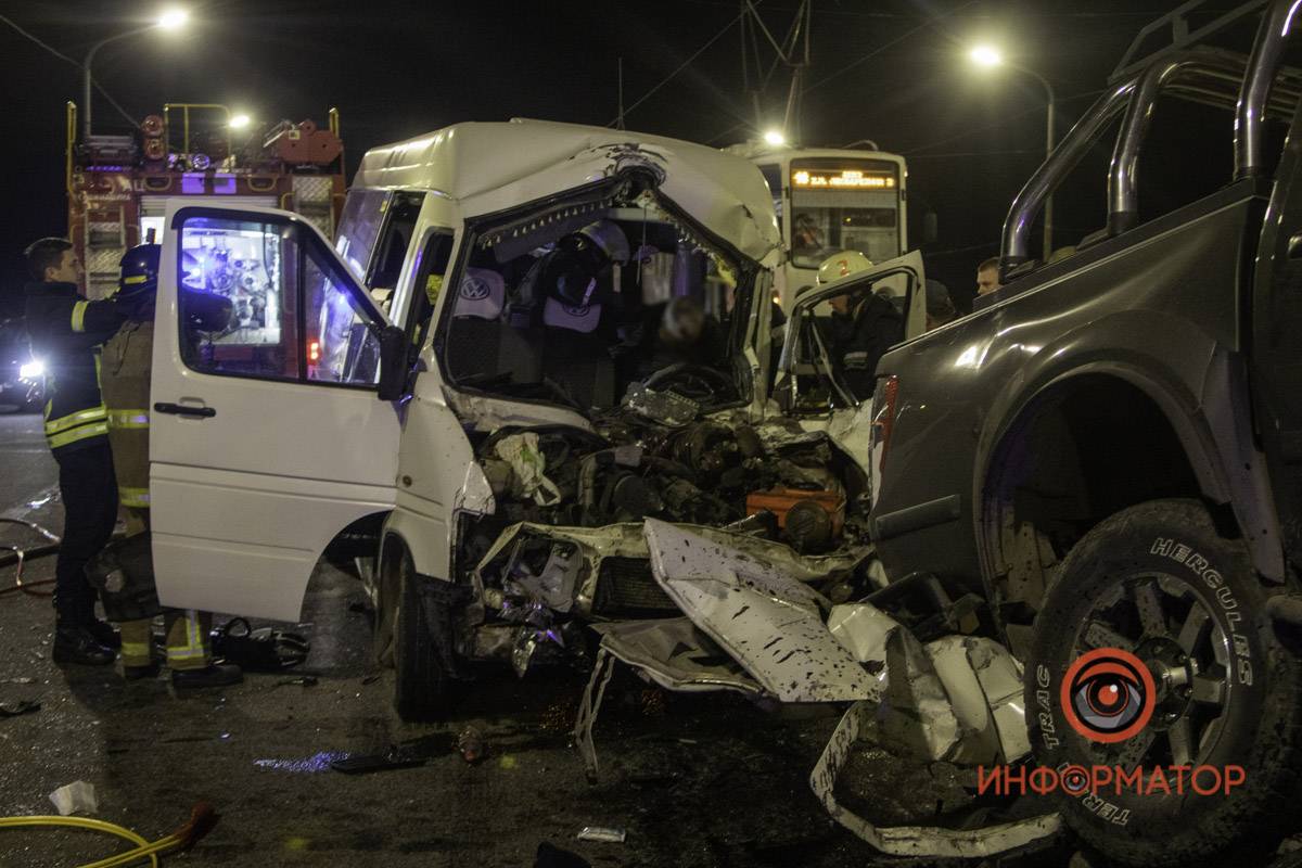 На Кайдакському мосту маршрутка "Дніпро-Харків" врізалася в евакуатор з поламаним автомобілем. Чоловік, який був за кермом мікроавтобуса, загинув. Швидка відвезла водія евакуатора з численними травмами.