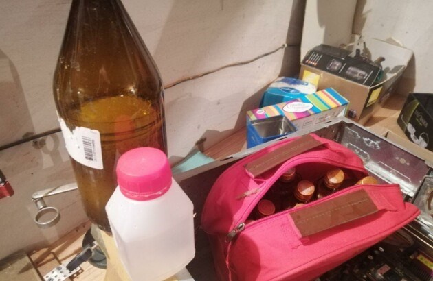 Співробітники правоохоронних органів провели санкціоновані обшуки у гаражі громадянина. Вони вилучили готові до реалізації наркотичні засоби. Було зафіксовано також пластикові та скляні пляшки з прозорою речовиною. Усі матеріали направили на експертизу.