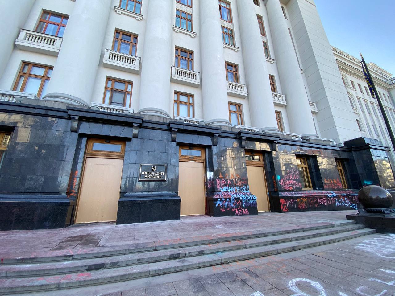 Будівлю Офісу президента майже відчистили від розписів та фарби прихильників Стерненка. Станом на ранок 25 березня клінінговій компанії вдалося відчистити не лише таблички "Президент України" а й відмити більшу частину фасаду будівлі, передає кореспондент ASPI news.