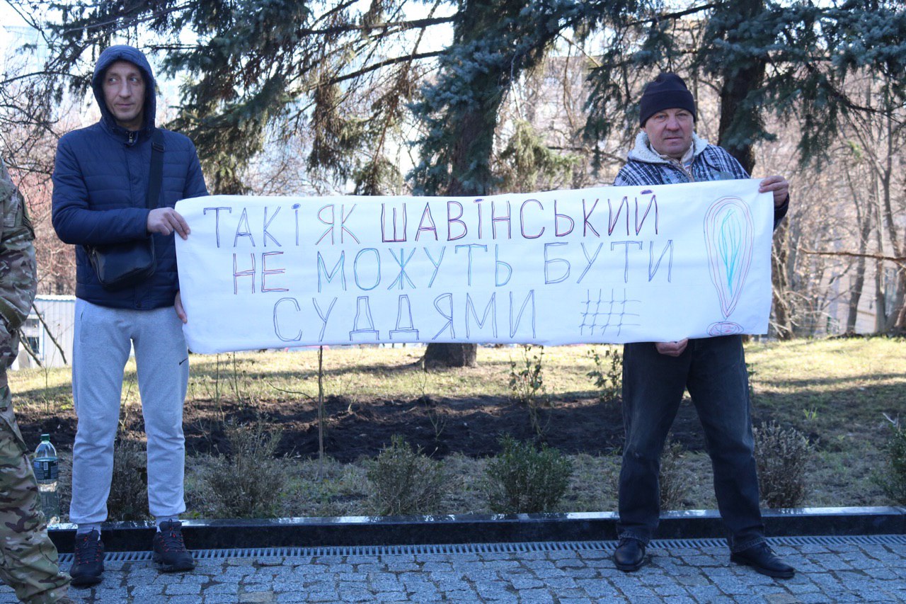 У понеділок, 18 березня, під будівлею відбувається акція протесту проти судді Окружного адміністративного суду Віталія Щавінського. Саме сьогодні він має проходити перекваліфікацію.