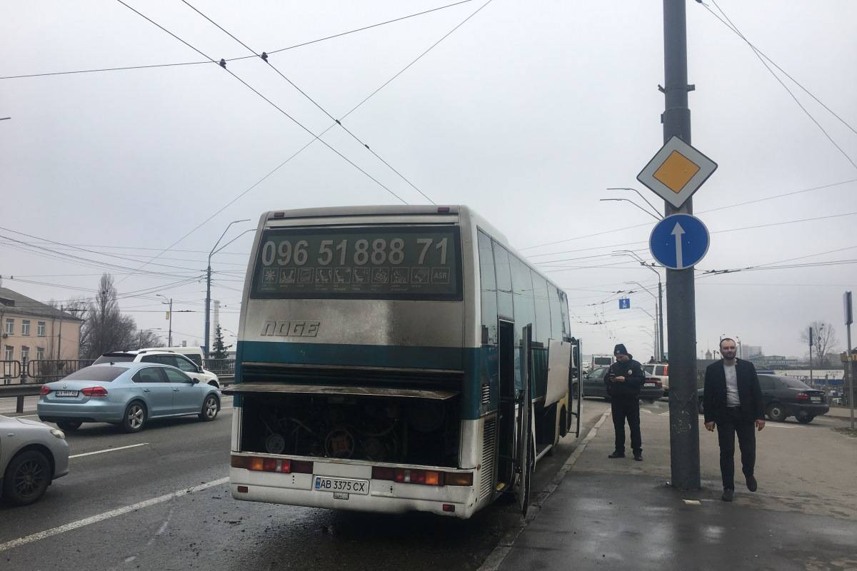 Поблизу київської станції метро Святошино в автобусі сталася пожежа (Фото)