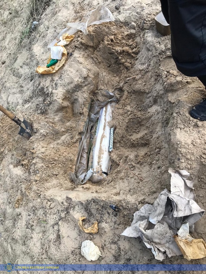 Співробітники СБУ вилучили зі схованки, що знаходилась неподалік лісосмуги, три ручні протитанкові гранатомети, протипіхотну міну МОН-50, два заряди до міномета калібру 120 мм, три гранати РПГ-22. Також виявлено дев’ятнадцять корпусів гранат РГД, РГ-42 та Ф1, три запали для ручних гранат, 3240 патронів калібру 5,45 мм та майже сімсот патронів калібру 7,62 мм.