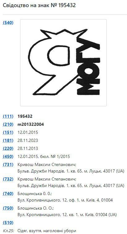 Як виявилося, торгова марка була зареєстрована під номером 195432. Дату заявки він подав у 2013 році під номером m201322004.