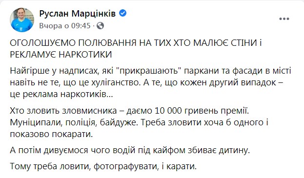 Руслан Марцінків оголосив "полювання" на тих, хто рекламує наркотики. Міський голова Івано-Франківська закликав надати необхідну інформацію стосовно порушників.