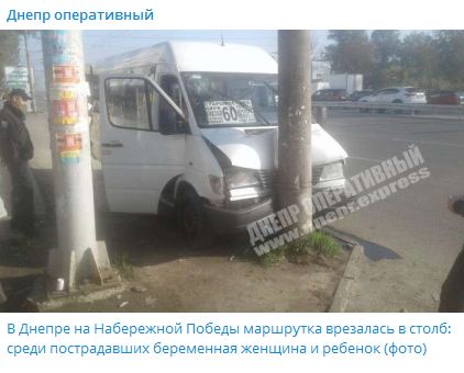 Сьогодні в Дніпрі сталася дорожньо-транспортна пригода, в результаті якої маршрутка № 60 з пасажирами в салоні врізалася в стовп. Через потужний удар деякі пасажири отримали серйозні травми і були госпіталізовані.