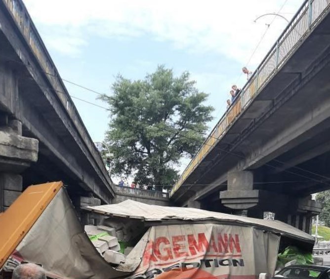 Вантажівка впала з моста. Про це 1 липня повідомила "Київ без цензури".