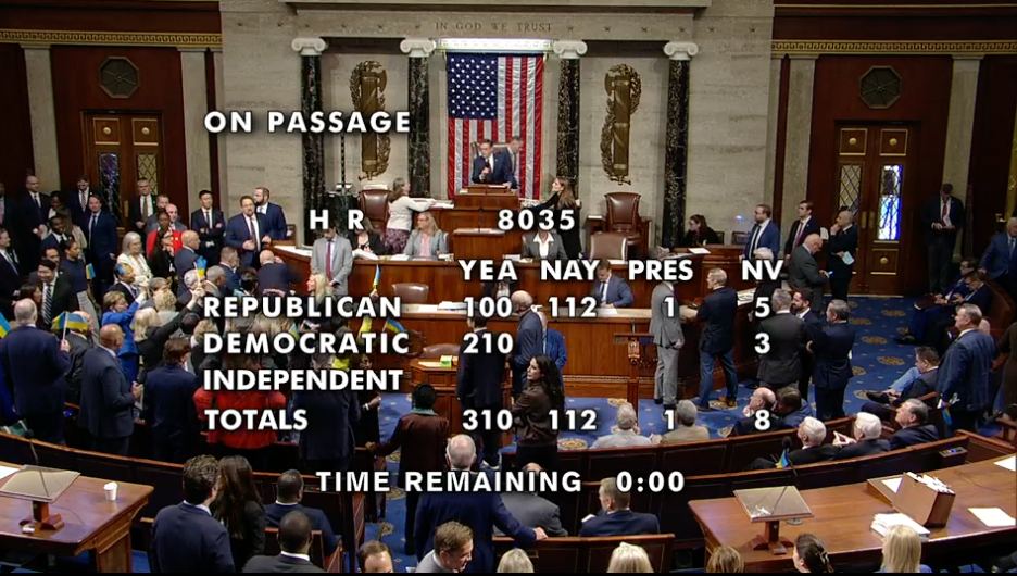 Палата представників підтримала «Акт про мир через силу у ХХІ столітті». Він, зокрема, передбачає право президента на нові санкції проти росії та Ірану та заходи з протидії Китаю (його ще негласно називають законопроєктом про заборону TikTok). В частині, що стосується України, законопроєктом передбачається можливість конфіскації суверенних активів рф на користь України.