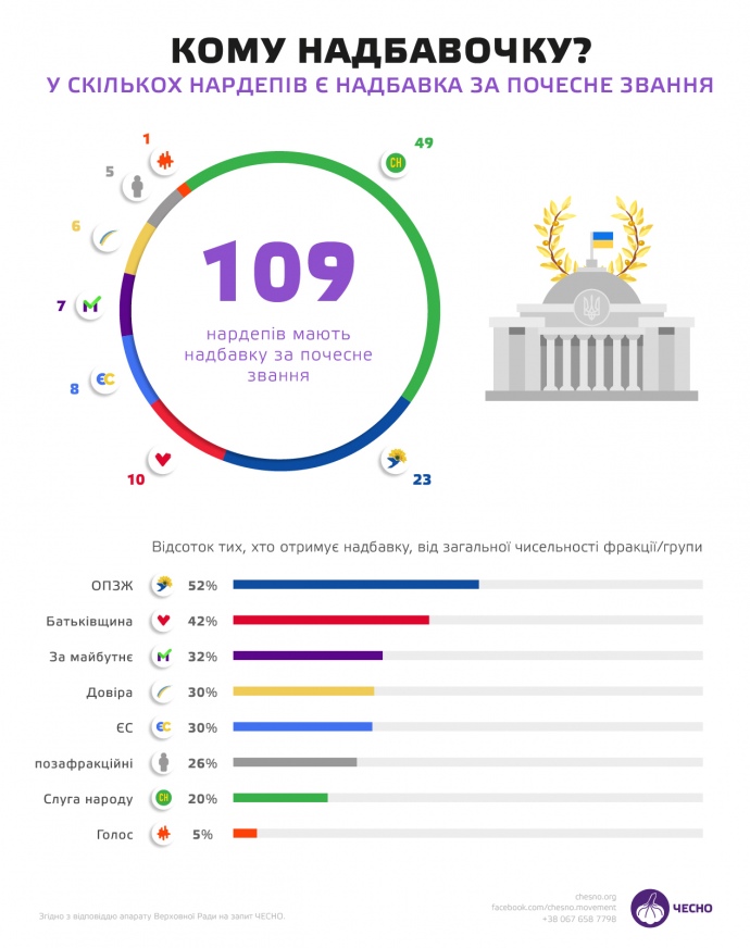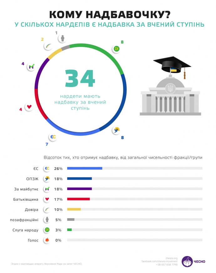 Громадський рух "Чесно" назвав кількість депутатів із науковим ступенем (Інфографіка)