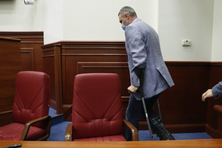 Мер Києва Віталій Кличко травмував ногу. Чиновник прийшов на засідання Київради, попри пошкодження.