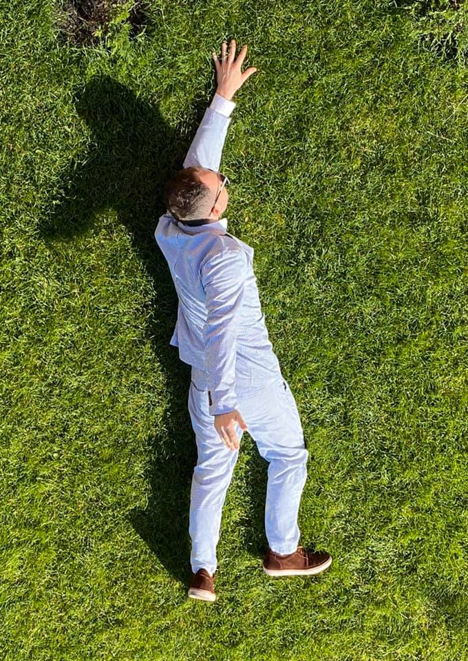 Керівник Мін'юсту поділився фото, на якому він в білому костюмі лежить на зеленому ганку. "Мріючи про роботу", - підписав світлини Малюська.