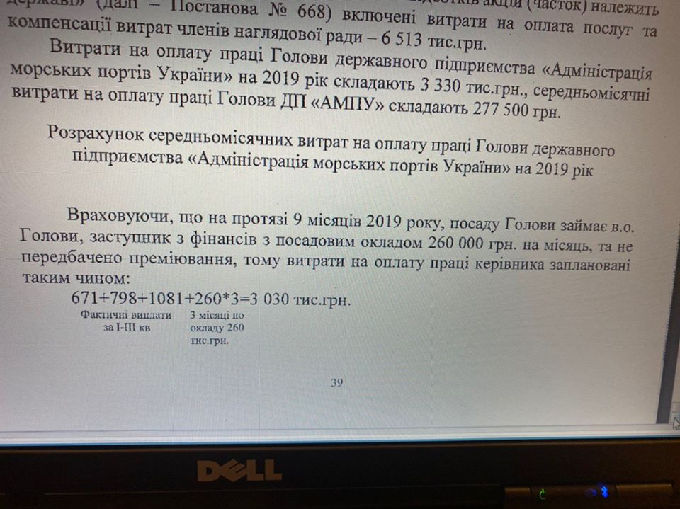 За словами Гончаренка, голова Адміністрації морських портів України буде отримувати в місяць близько 277 тис грн.