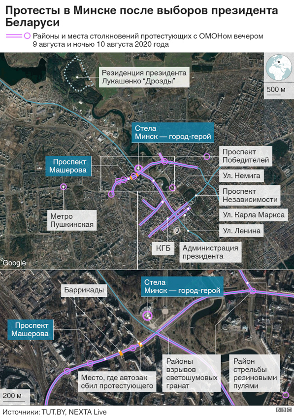 Багатотисячні протести в Мінську та інших великих містах Білорусі у відповідь на неправдивий, на думку білорусів, підрахунок голосів під час виборів президента країни призвели до силових сутичок громадян з місцевою міліцією. На придушення протестів відряджений ОМОН. Для розгону демонстрантів використовують кийки, сльозогінний газ, водомети та світлошумові гранати. По мітингувальниках стріляють гумовими кулями.