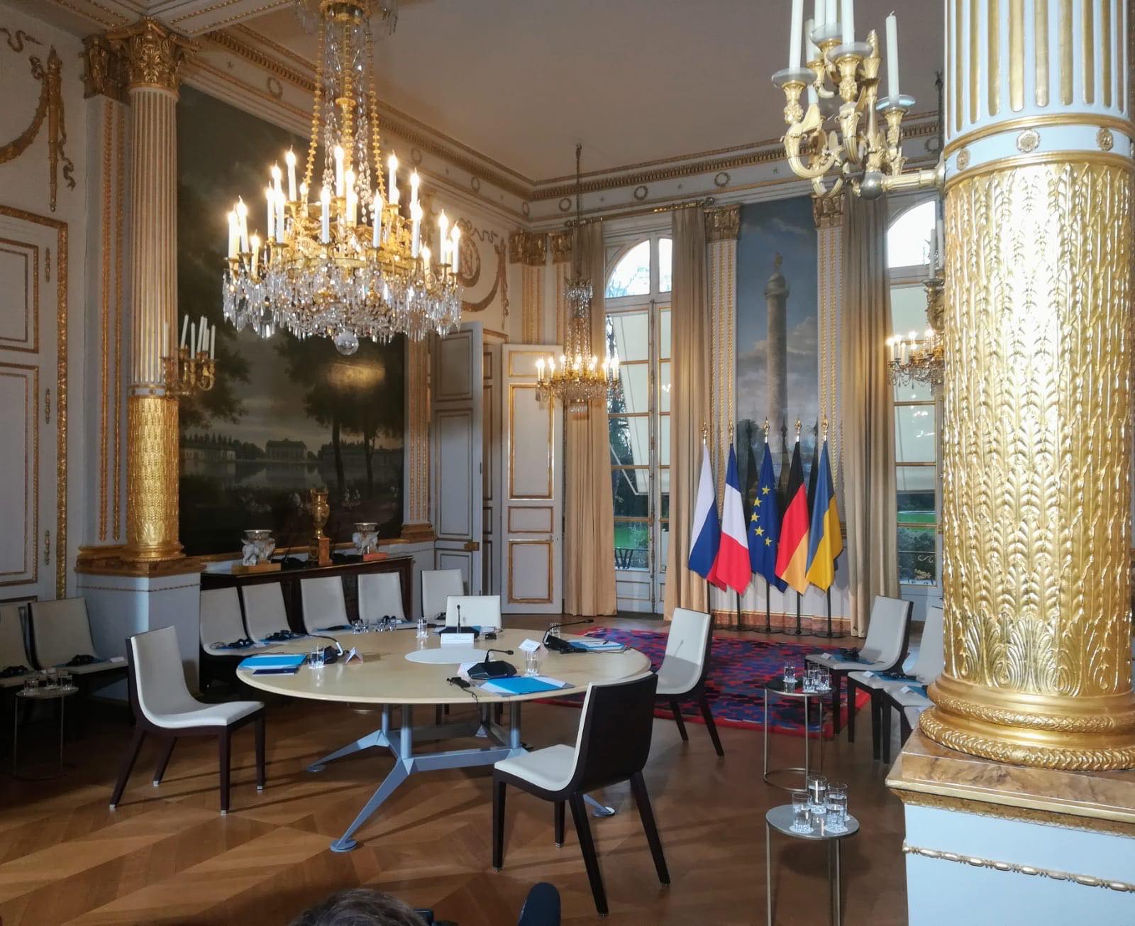 18.35 Переговоры лидеров 4 стран проходят в зале Мюрата в Елисейском дворце. Путин занял место за столом напротив Зеленского, слева от "хозяина Кремля" – Меркель, справа – Макрон. СМИ сообщают, что Зеленский поначалу хотел занять стул Путина, после чего прошел к своему месту.