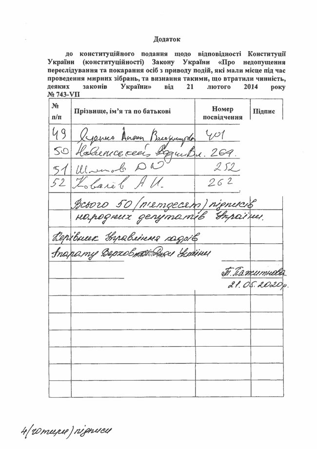 До судової інстанції з відповідною вимогою звернулися 50 нардепів. Про це 2 червня повідомили у прес-службі Конституційного Суду.