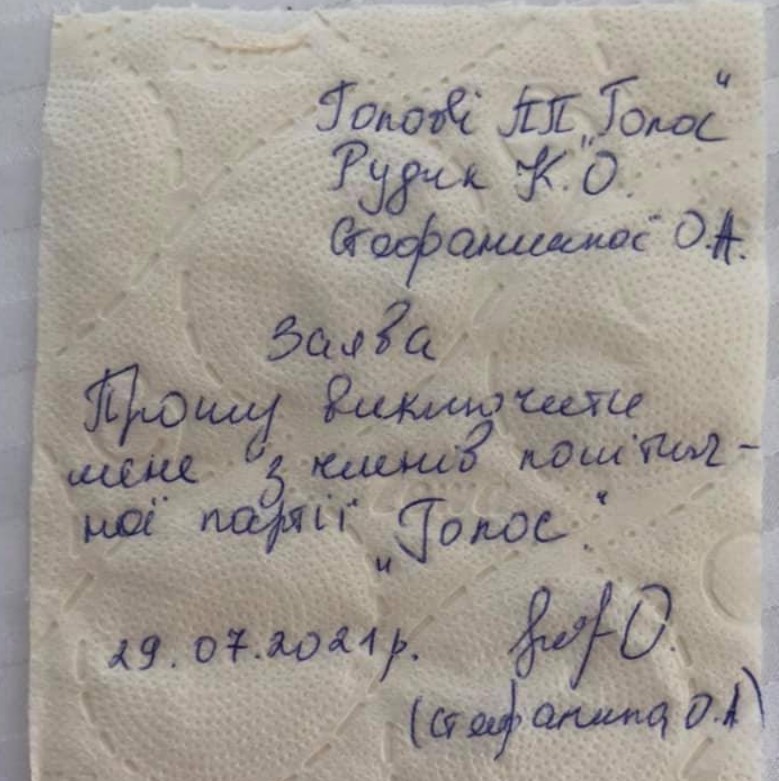 До свого допису нардепка підкріпила фото заяви про вихід із партії. Таку ж позицію виклав народний депутат Ярослав Юрчишин. Депутатка Ольга Стефанишина вирішила заяву написати на туалетному папері, продемонструвавши своє ставлення до теперішнього керівництва політсили.