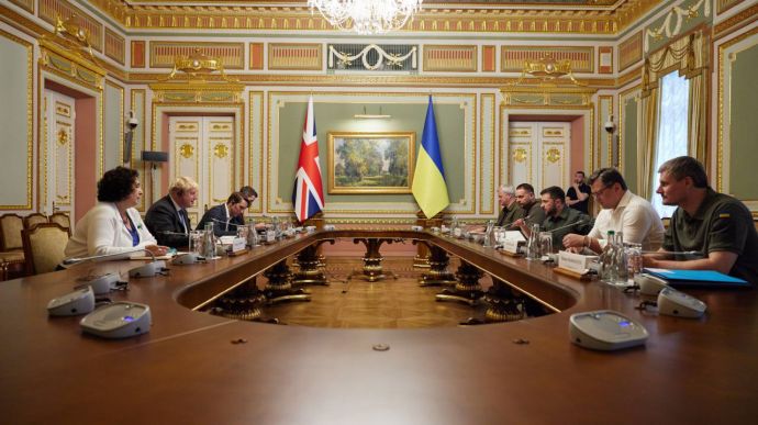 Президент Володимир Зеленський, команда ОП та уряду обговорили з прем’єром Великої Британії Борисом Джонсоном постачання важкої зброї та систем ППО. Також у фокусі були економічна підтримка України, посилення санкційного тиску на РФ, а також гарантії безпеки.