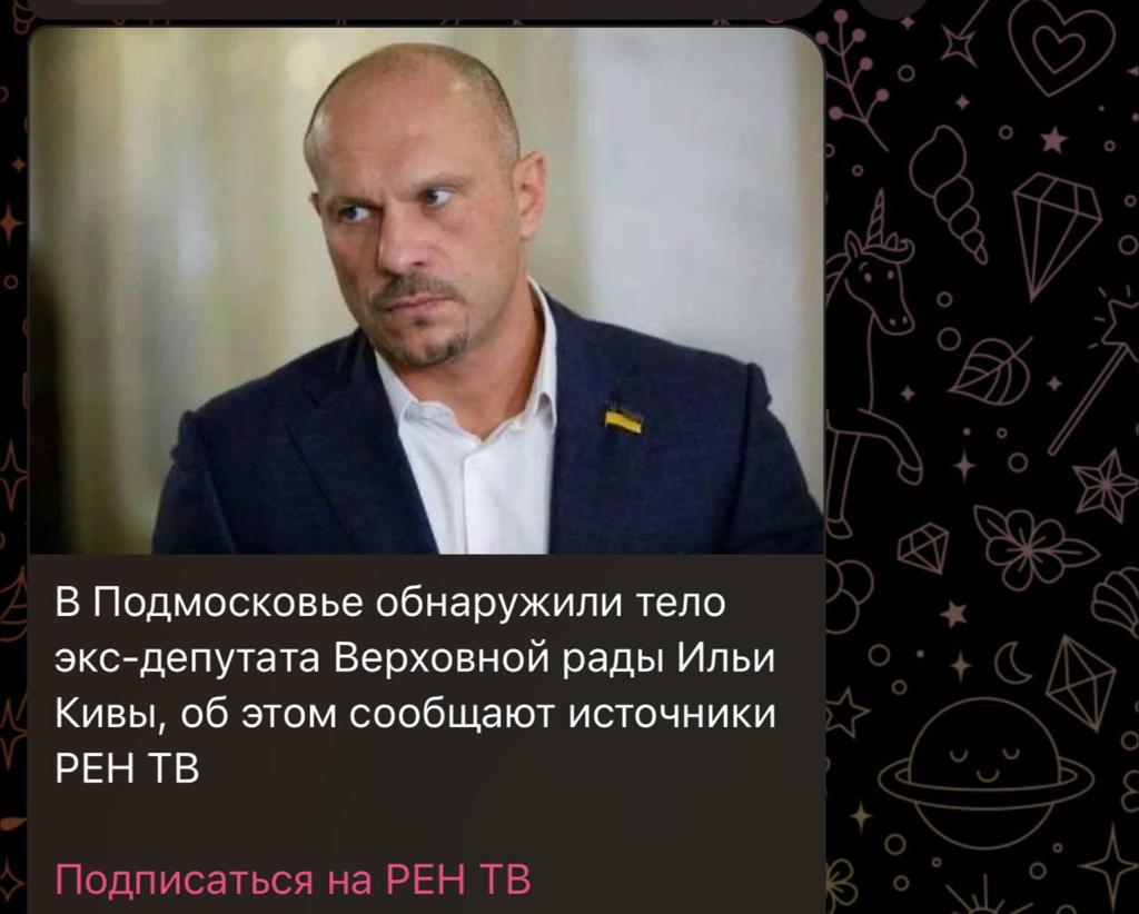Так, канал з посиланням на власні джерела повідомляє, що тіло колишнього депутата Верховної Ради України від партії "Опозиційна платформа — За життя" (ОПЗЖ) Іллі Киви було знайдене у Підмосков'ї. Зазначається, що його тіло було знайдено в Одінцово. Проте офіційного підтвердження цієї інформації ще немає.