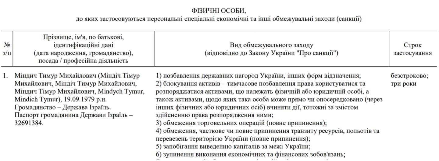 На фігурантів багатомільярдної корупційної схеми в енергетиці Тимура Міндіча та Олександра Цукермана наклали санкції. Їм заблокують активи, заборонять переказувати кошти та позбавлять державних нагород.