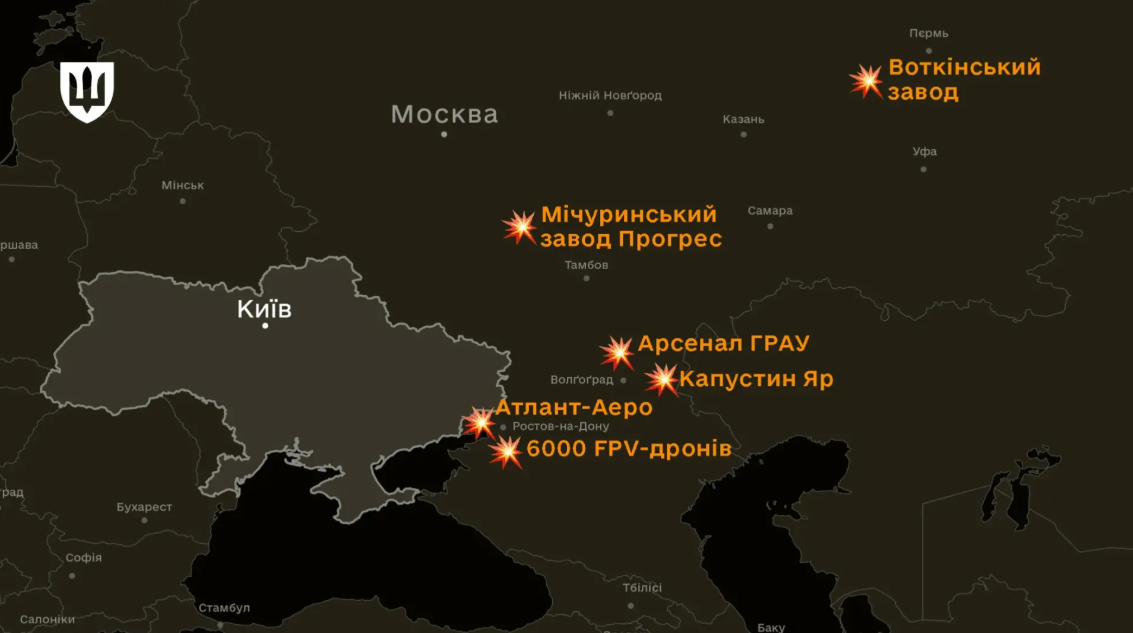 Міністерство оборони України повідомило, що від початку року сили оборони успішно атакували три великі військові заводи, два арсенали та ключовий полігон Росії. Серед цілей — підприємства у Таганрозі, Мічурінську та Нижньому Новгороді, арсенали у Брянській та Курській областях, а також полігон Капустін Яр.
