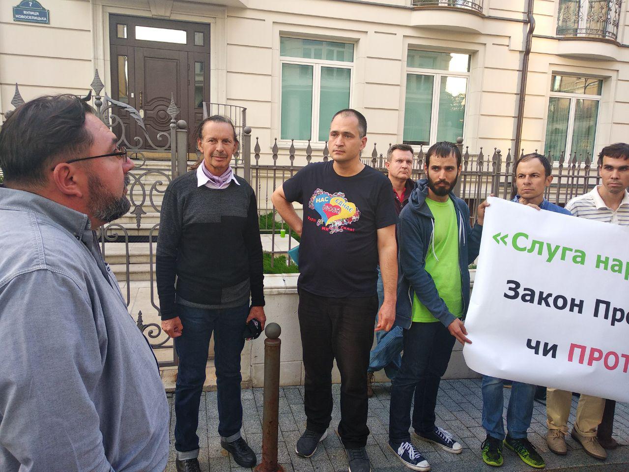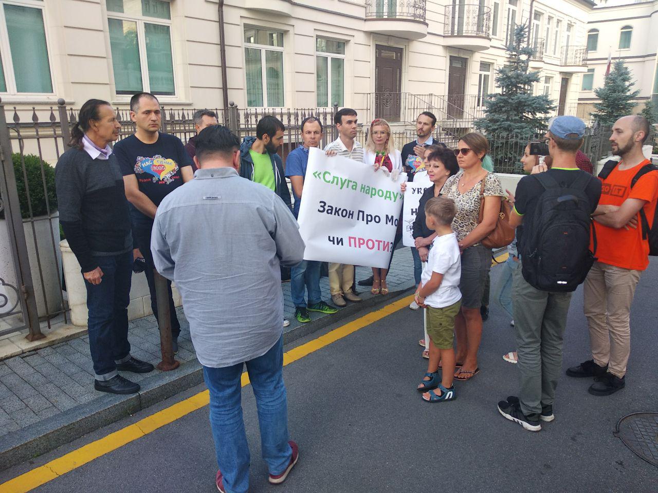 Активісти з ініціативи "Про мову" прийшли до офісу партії "Слуга народу" з вимогою пояснити позицію політсили щодо мовного закону.