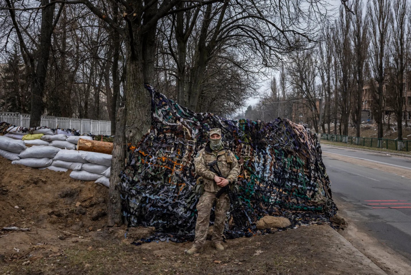 Перевішані зброєю жителі Василькова, провінційного українського містечка, успішно відбивалися від російських військ у перші дні війни, допомагаючи утримувати столицю в безпеці та входячи в українські військові лави. Мер міста Наталія Баласинович та командир місцевого загону тероборони «Щит Василькова» Андрій Мельник (на фото) завжди готові допомогти ЗСУ в обороні міста.