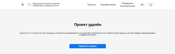 "Проект видалено", – повідомляється на сайті російського уряду. Причини видалення документа поки невідомі. Разом з тим на сайті archive.is залишилася збережена копія опису законопроєкту, який запропонувало Міноборони РФ.