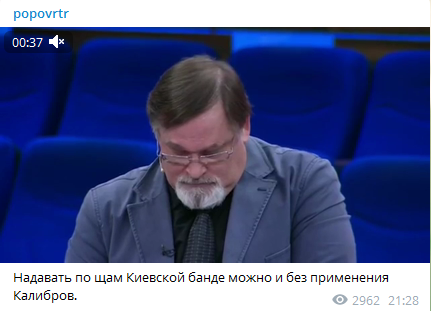 Російський пропагандистський телеведучий Євген Попов у програмі "60 хвилин" на "Росія 1" заявив, що Кремль може "дати по щам" Україні у разі наступу на Донбас. Росія зробить це і без застосування "калібрів".