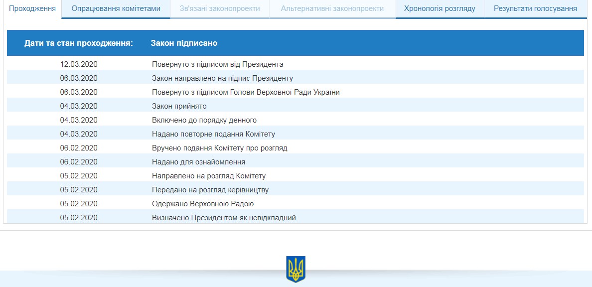 Зазначається, що закон повернуто з підписом від президента сьогодні, 12 березня.