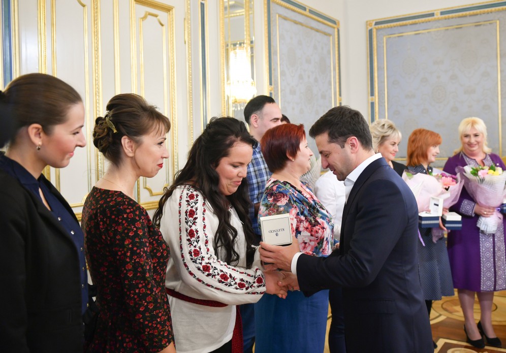 Сьогодні, 6 жовтня, президент України Володимир Зеленський разом з дружиною Оленою провів зустріч з переможцями конкурсів "Учитель року – 2019" та Global Teacher Prize Ukraine 2019.