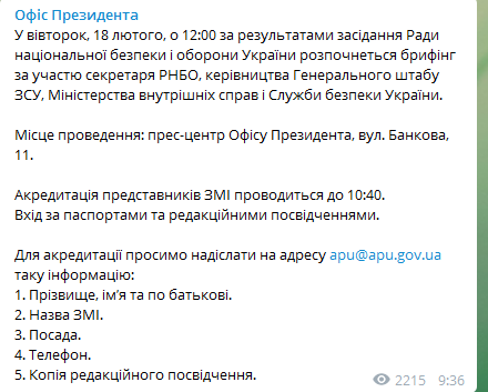 У вівторок, 18 лютого, відбудеться засідання Ради національної безпеки і оборони України.