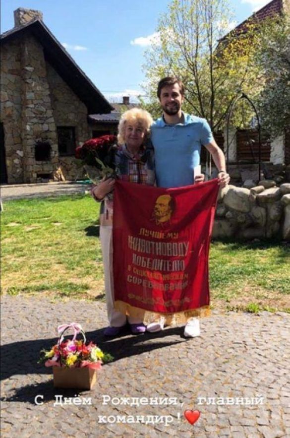Олексій Хахльов, півзахисник львівських «Карпат», привітав свою бабусю із 76-річчям. Він тримав в руках червоний прапор із зображенням комуністичного вождя Володимира Леніна.