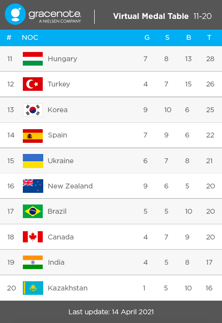 Проте, аналітики припускають, що Україна на 10 медалей поліпшить свої показники з Олімпіади-2016 в Ріо-де-Жанейро, де наша команда завоювала 11 медалей (2 золотих, 5 срібних, 4 бронзових) і посіла 31-е місце в медальному заліку.