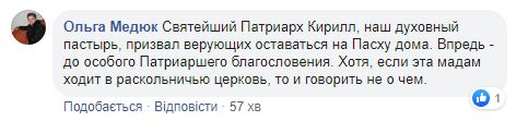 Одразу ж посипалися коментарі, здебільшого обурені. Люди навіть використовували аргументи з Біблії та наводили приклади з закликами духовенства, у тому числі РПЦ, залишатися на Великдень удома.